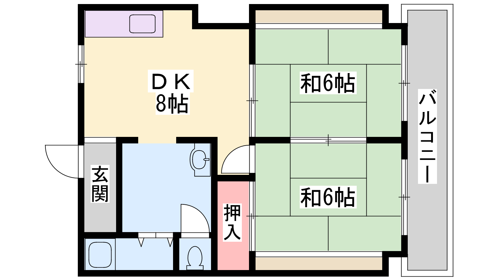 - DK8帖、和室6帖、和室6帖