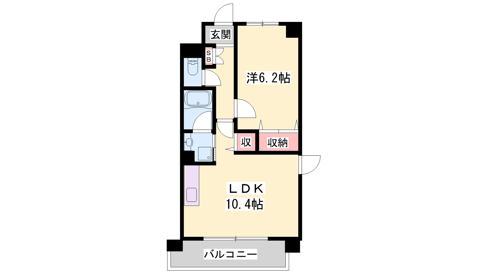 - LDK10.4帖、洋室6.2帖