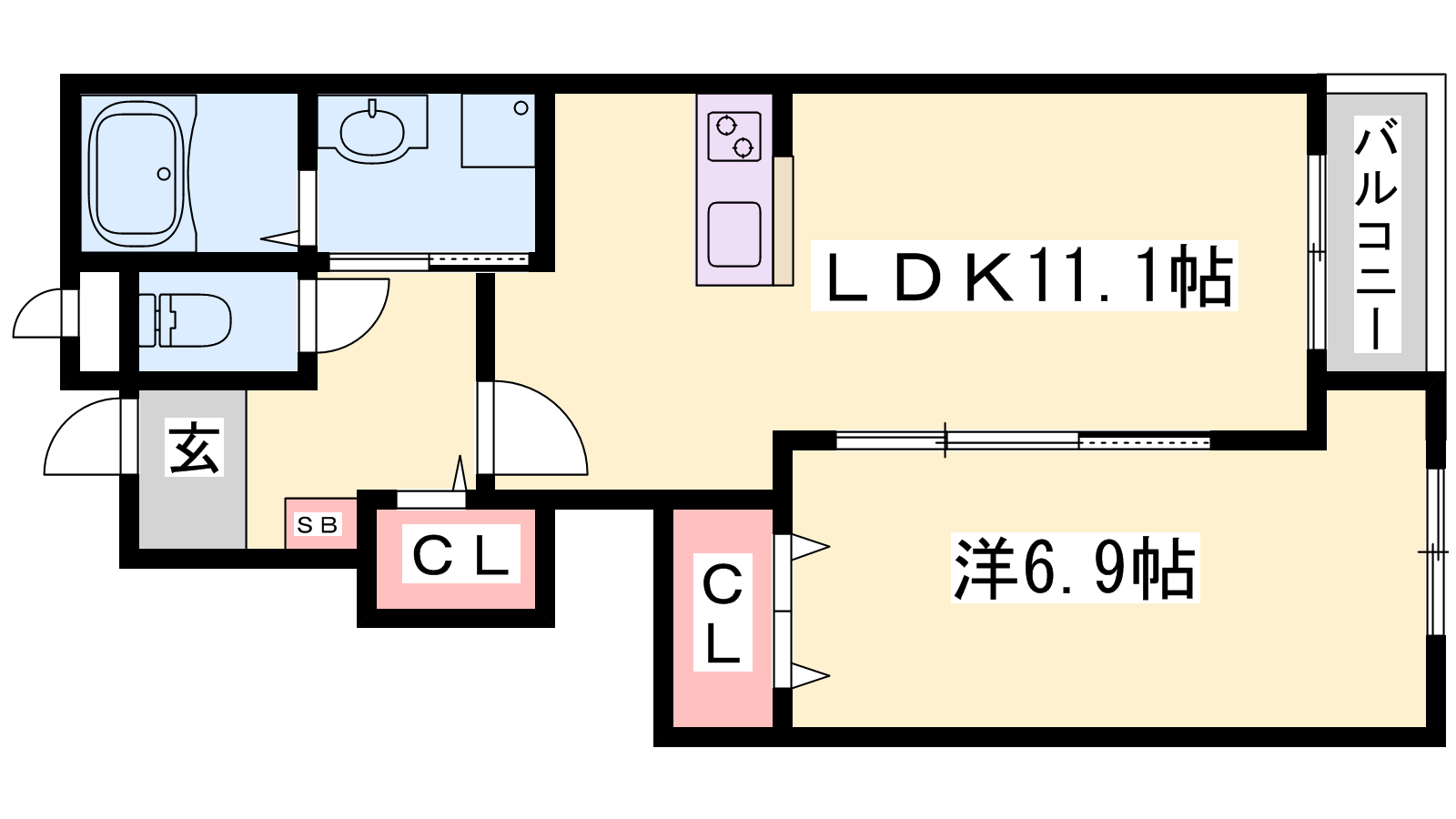 - LDK11.1帖、洋室6.9帖