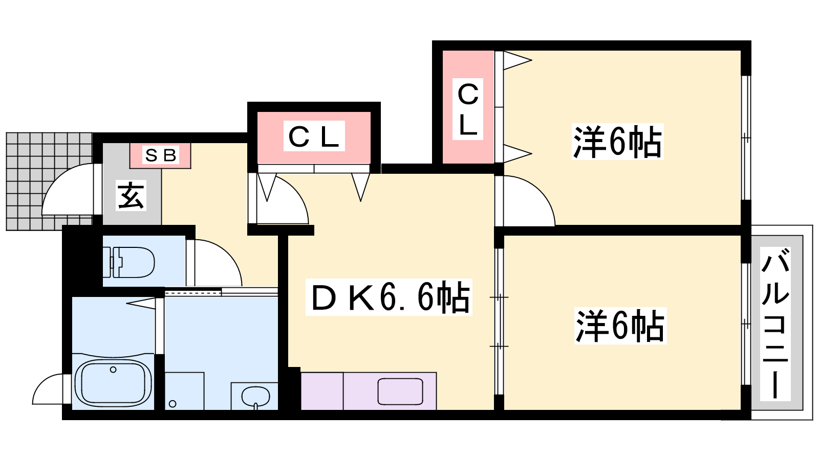 - DK6.6帖、洋室6帖、洋室6帖