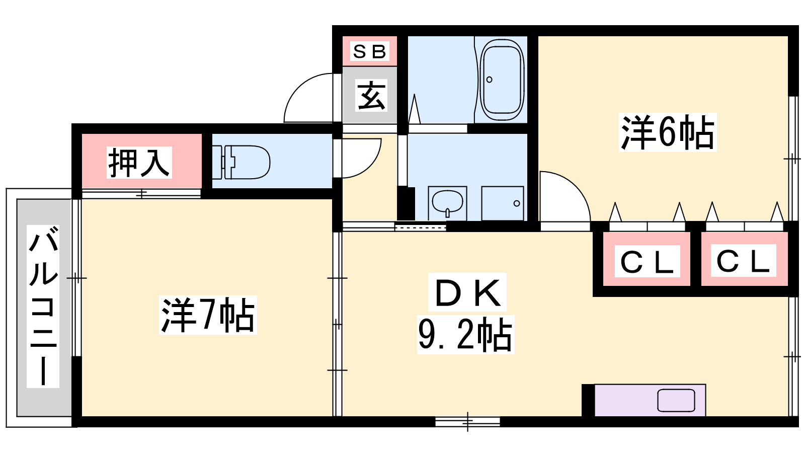 - DK9.2帖、洋室7帖、洋室6帖