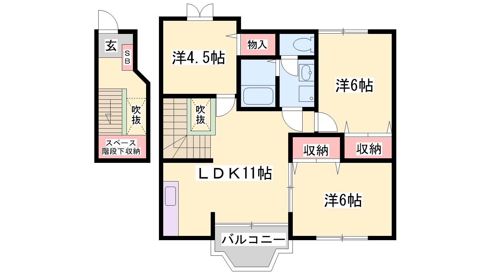 - LDK11帖、洋室6帖、洋室6帖、洋室4.5帖