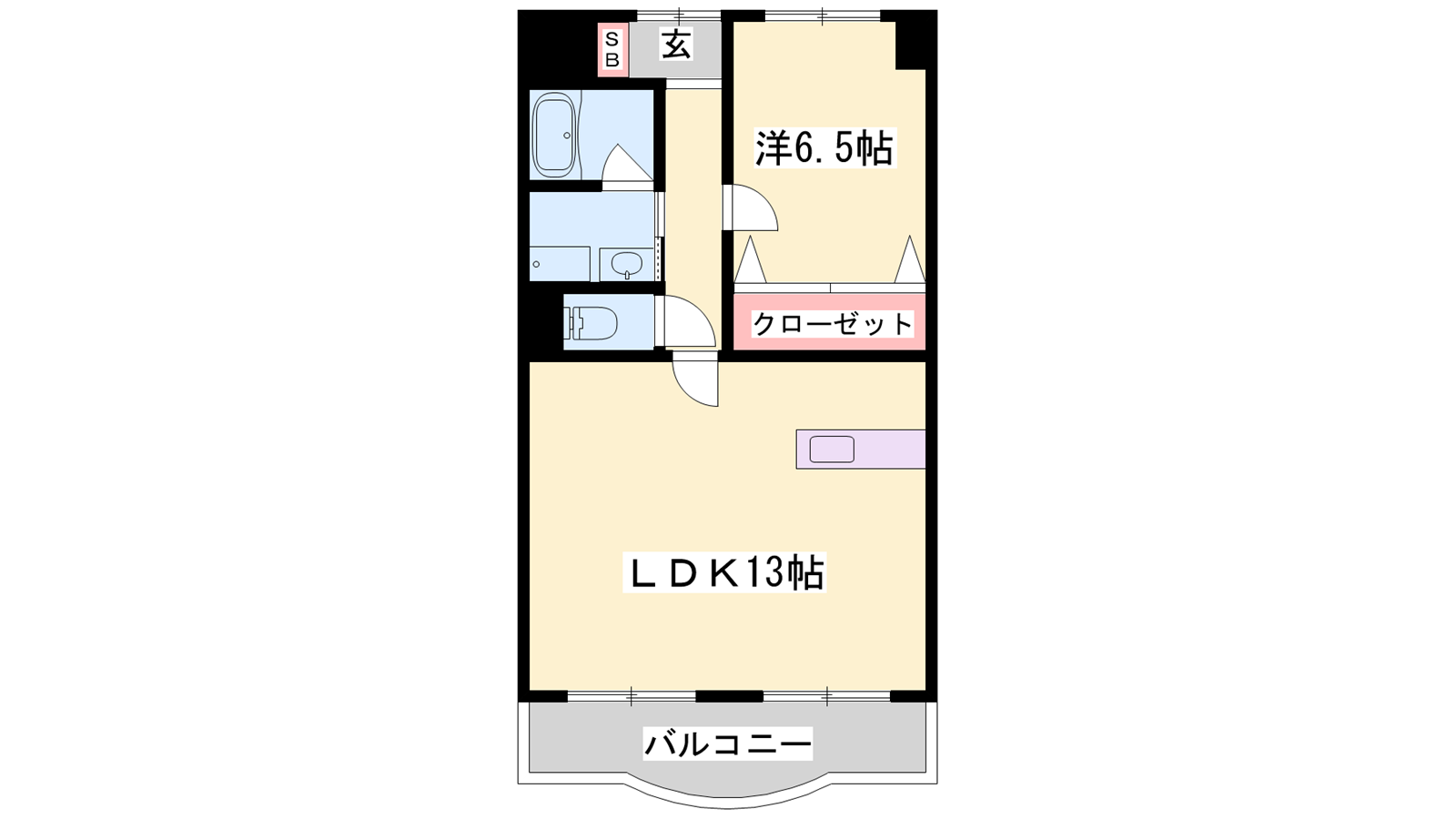 - LDK13帖、洋室6.5帖