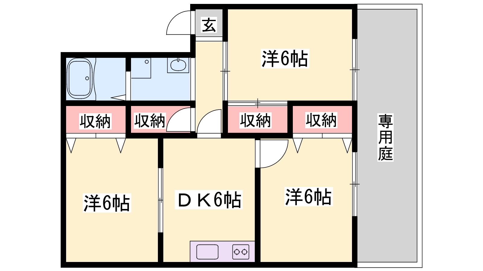 - DK6帖、洋室6帖、洋室6帖、洋室6帖