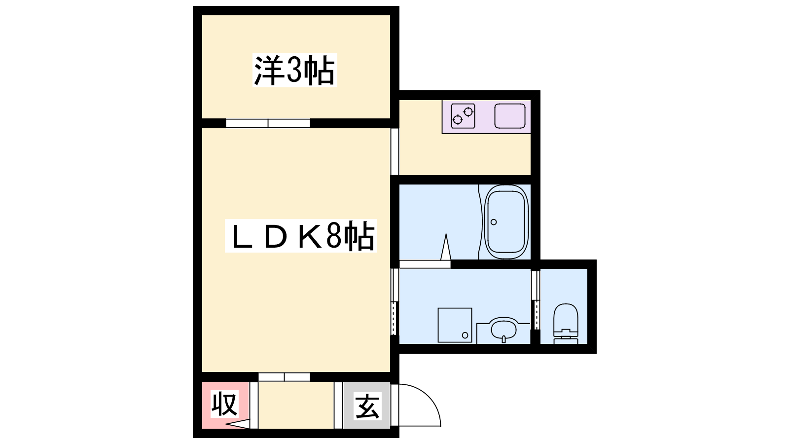 - LDK8帖、洋室3帖