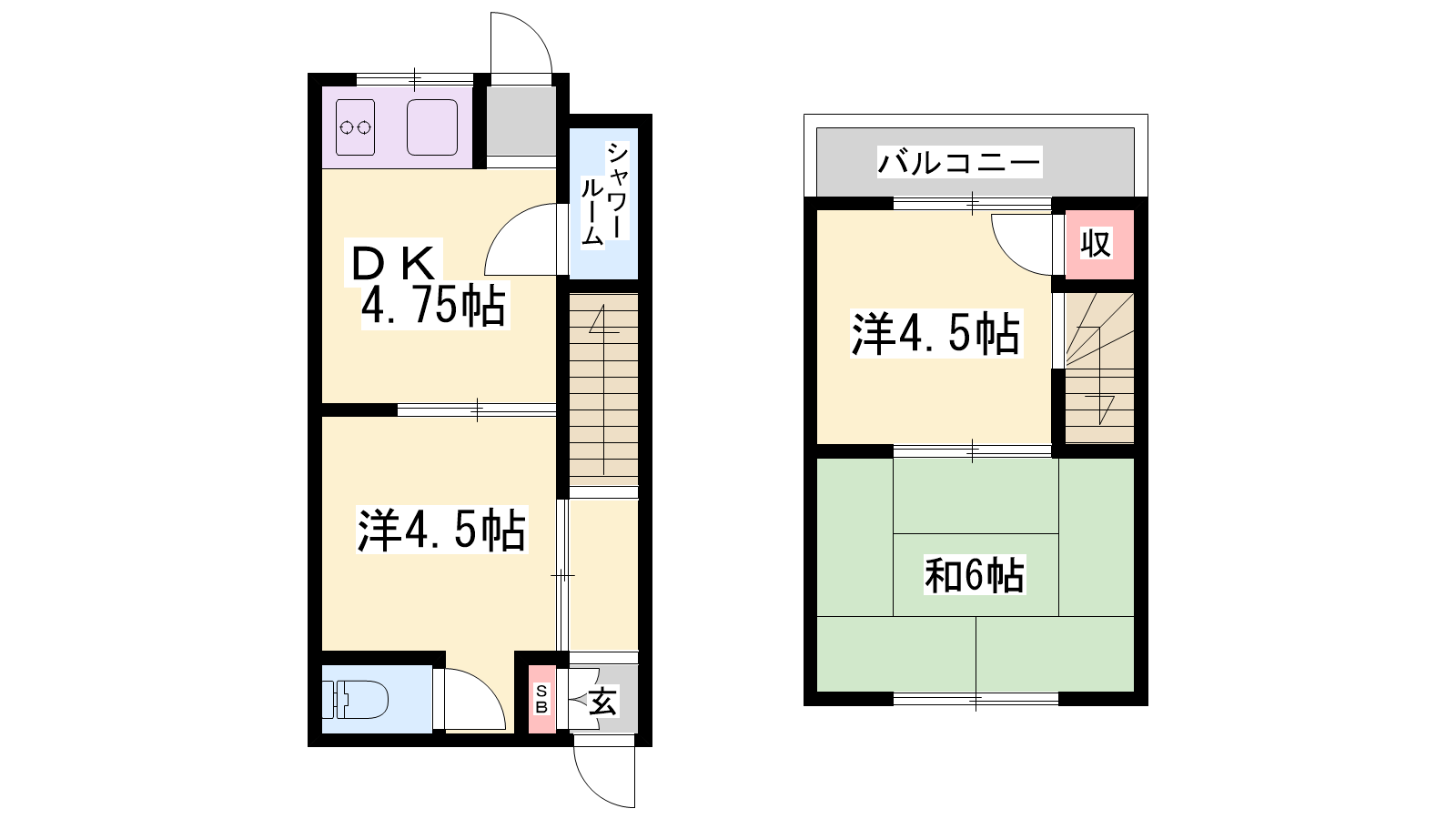 - DK4.75帖、洋室4.5帖、洋室4.5帖、和室6帖