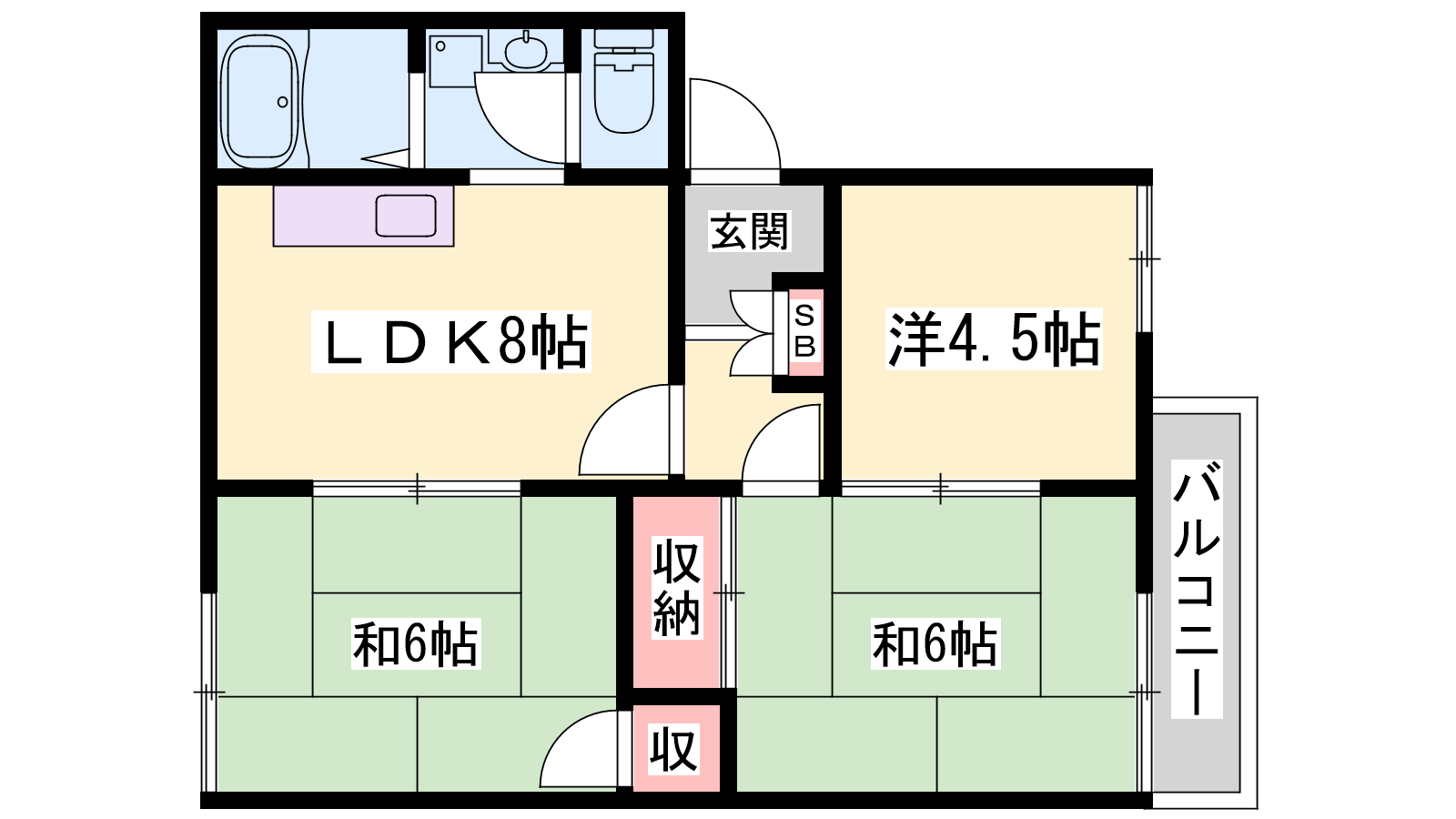 - DK8帖、洋室5帖、和室6帖、和室6帖