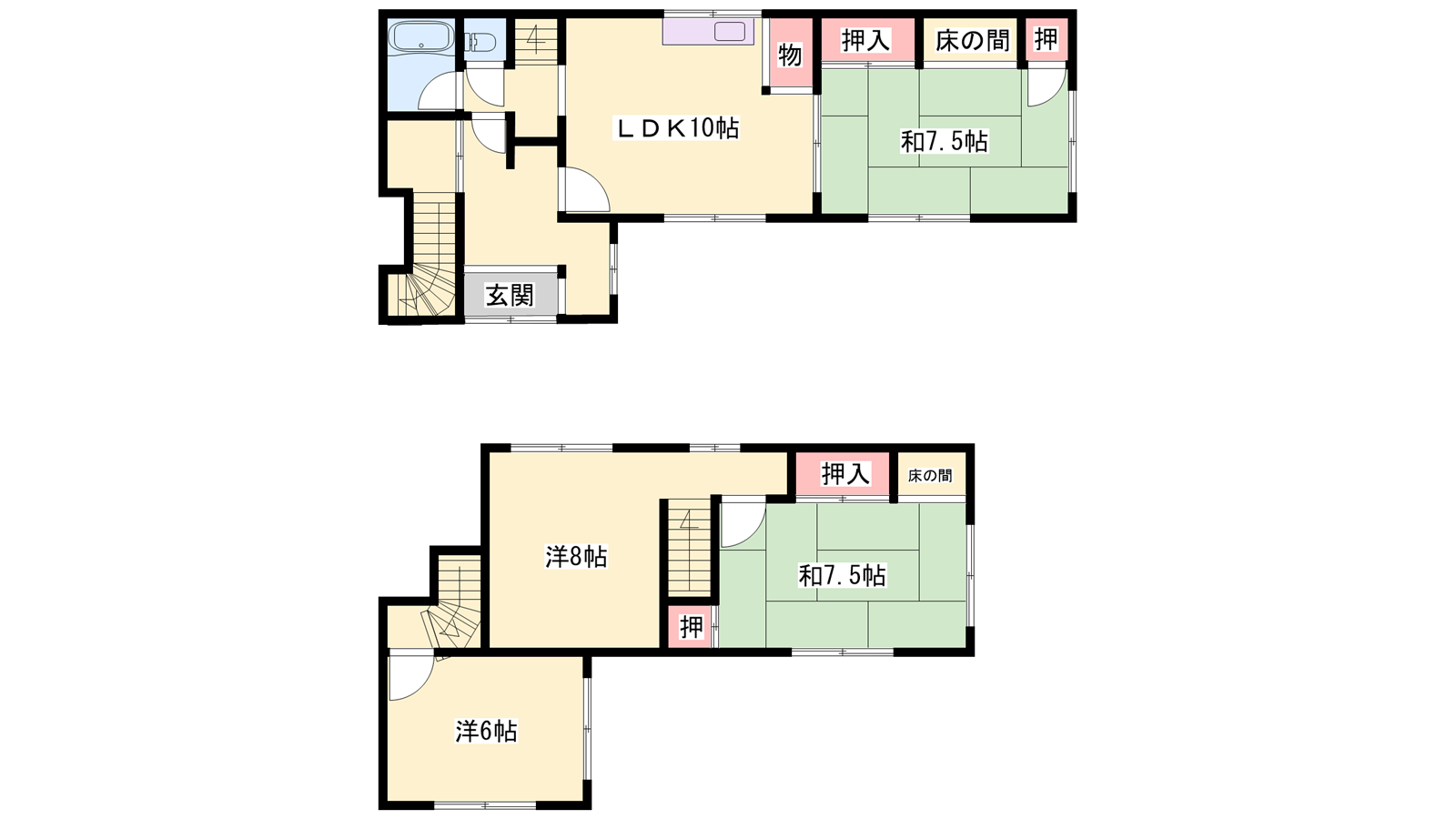 - LDK10帖、洋室8帖、洋室6帖、和室8帖、和室8帖