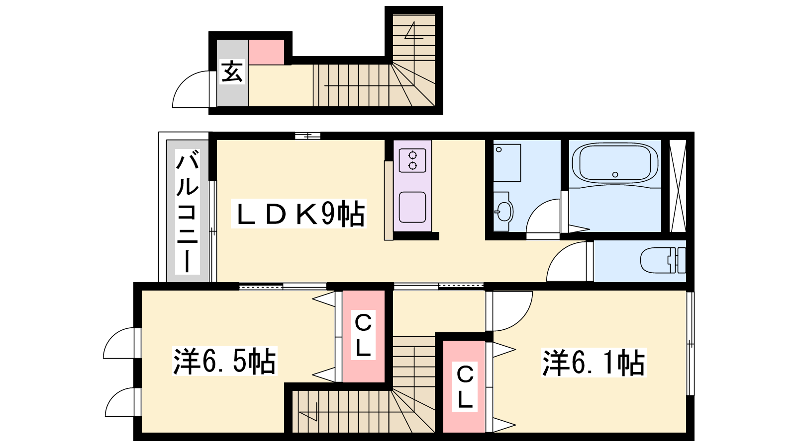 - LDK9帖、洋室6.5帖、洋室6.1帖