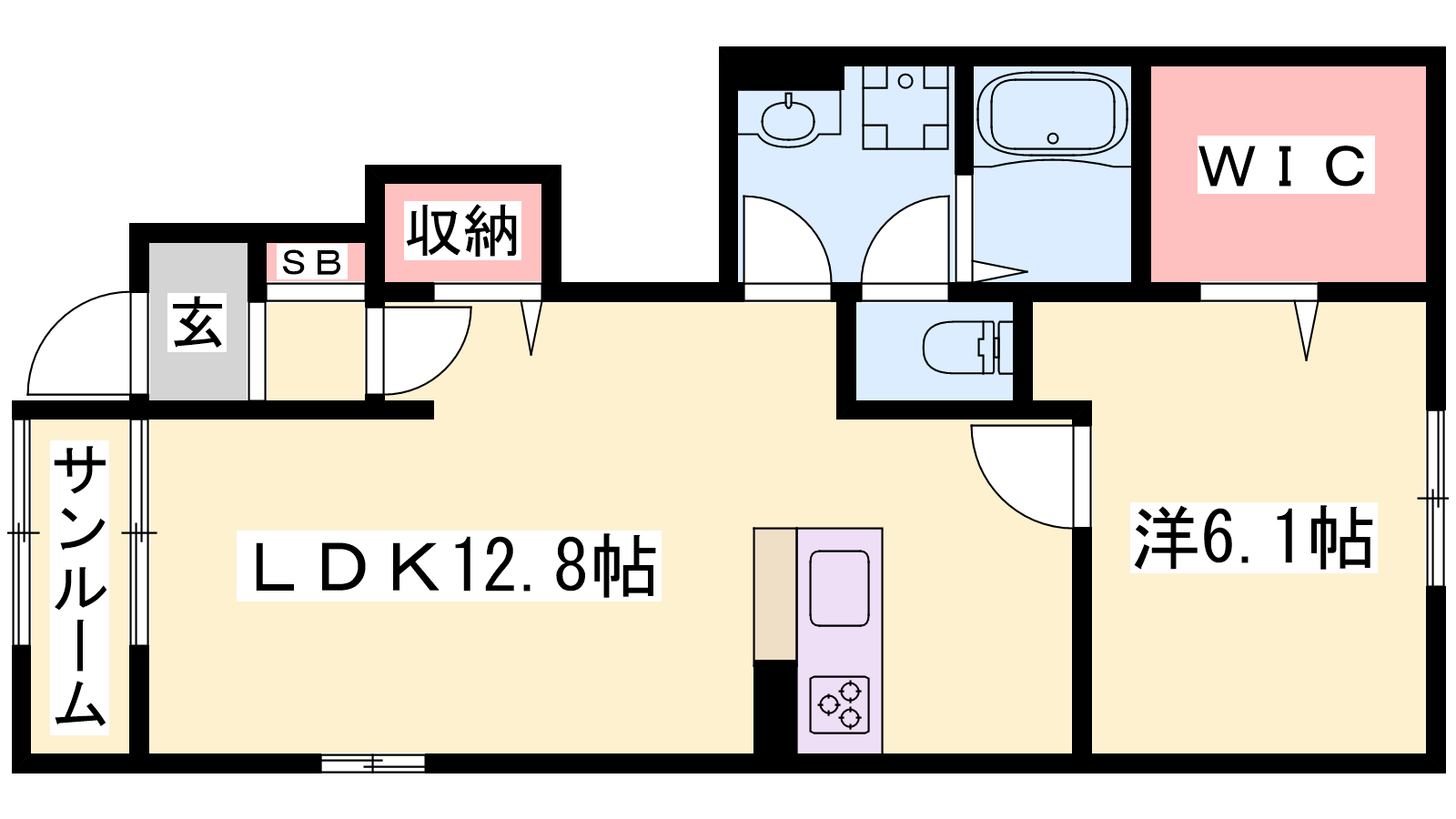 - LDK12.8帖、洋室6.1帖
