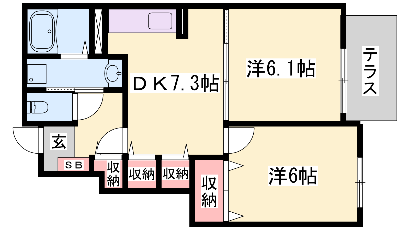 - DK7.3帖、洋室6.1帖、洋室6帖