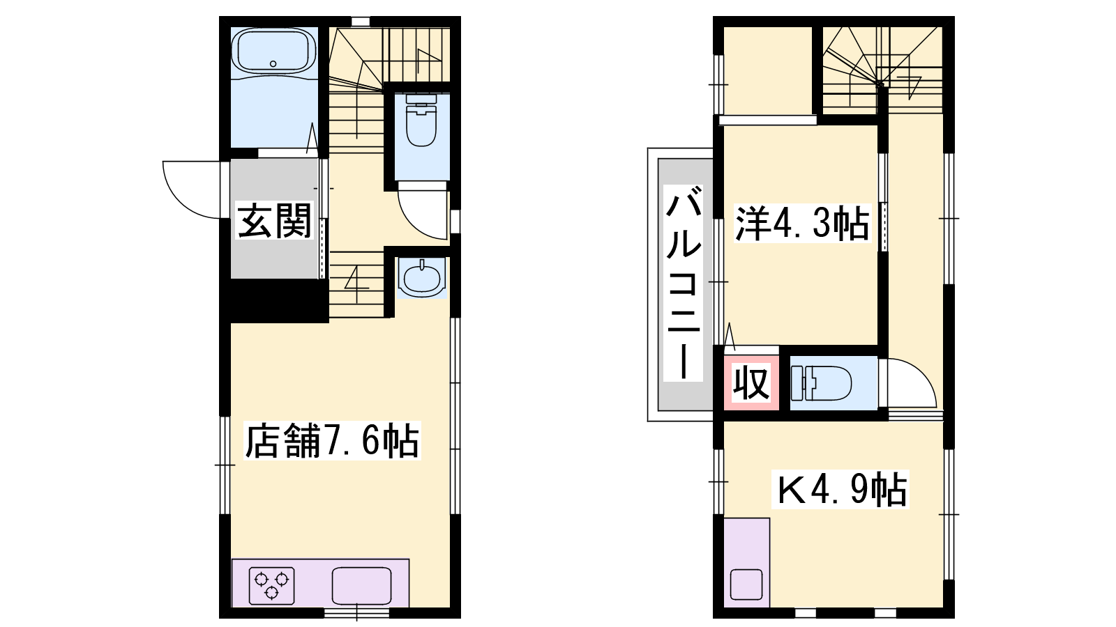 - K4.9帖、洋室4.3帖