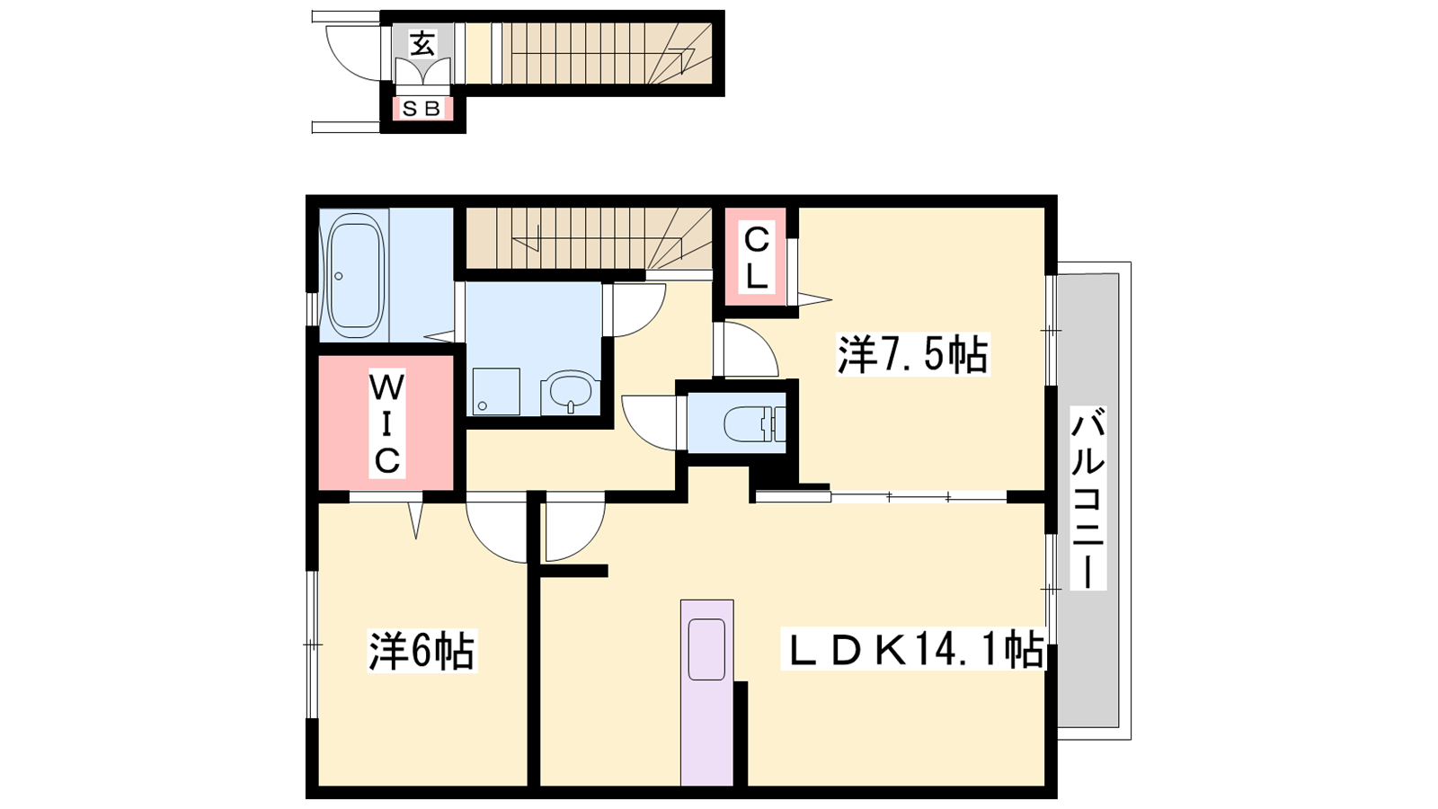 - LDK14.1帖、洋室7.5帖、洋室6帖