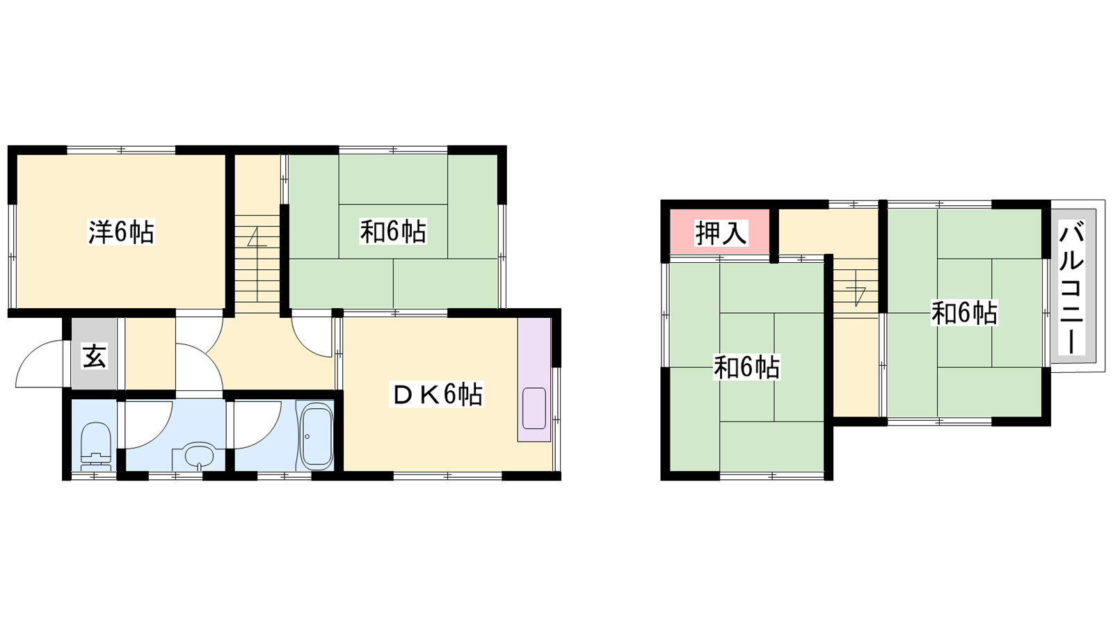 - DK6帖、洋室6帖、和室6帖、和室6帖、和室6帖