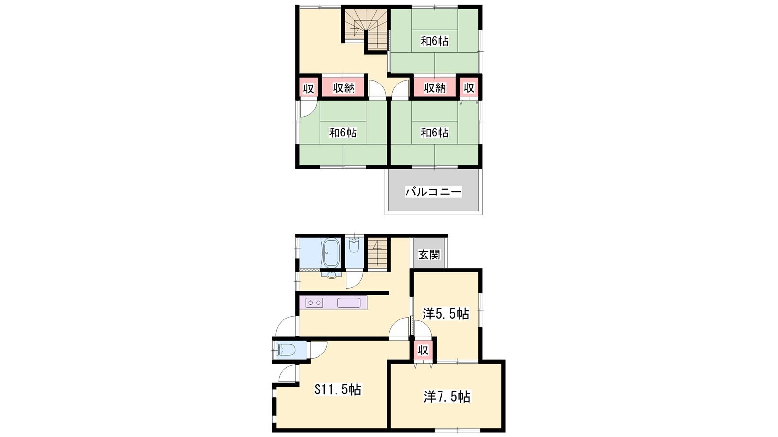- K4帖、洋室7.5帖、洋室5.5帖、和室6帖、和室6帖、和室6帖