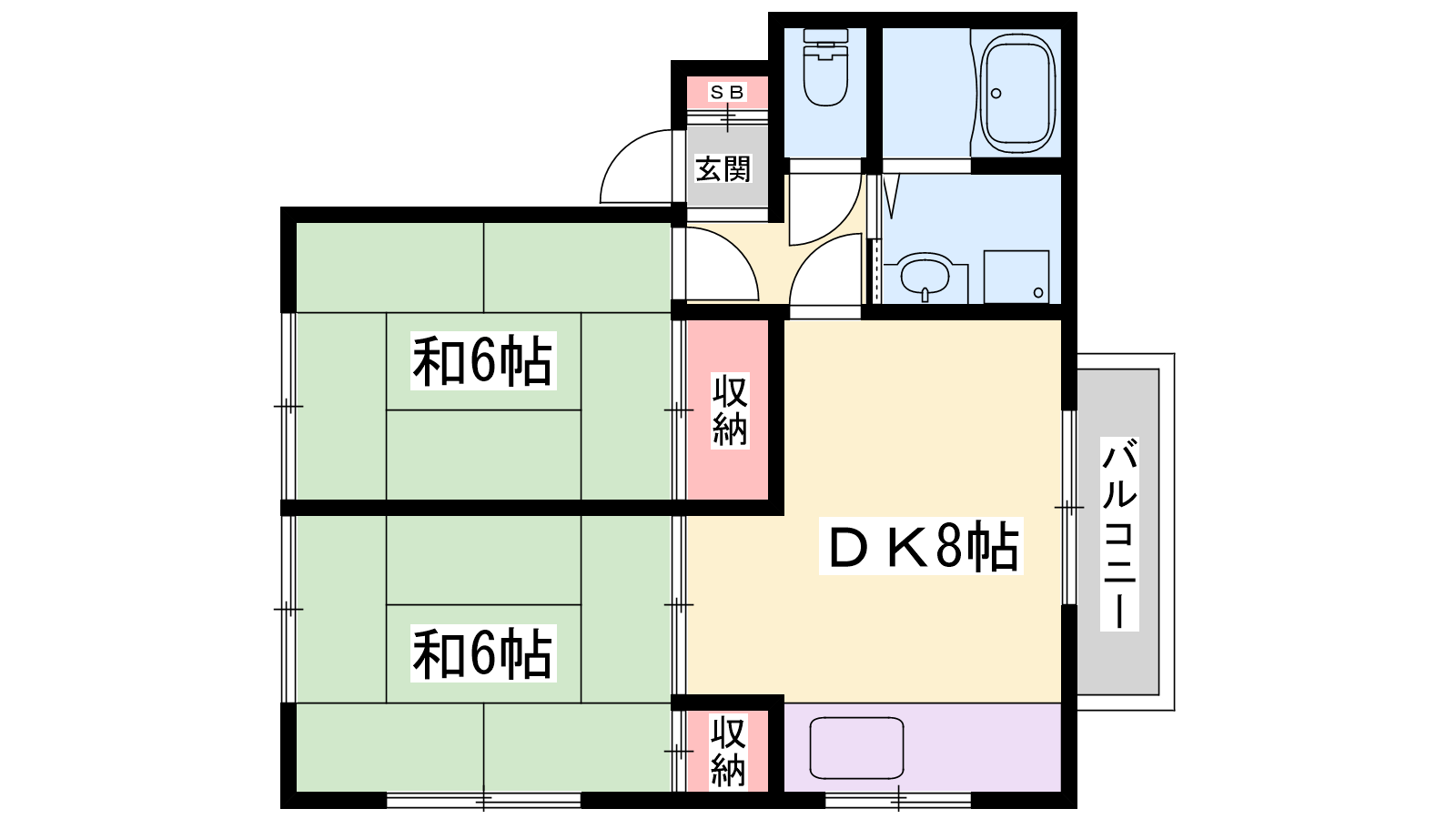 - DK8帖、和室6帖、和室6帖