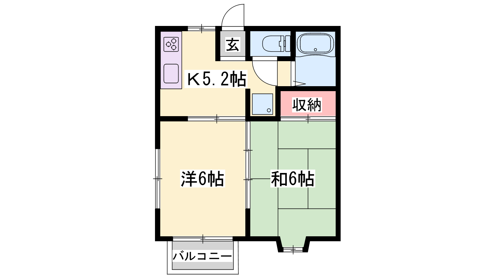 - K5.2帖、洋室6帖、和室6帖