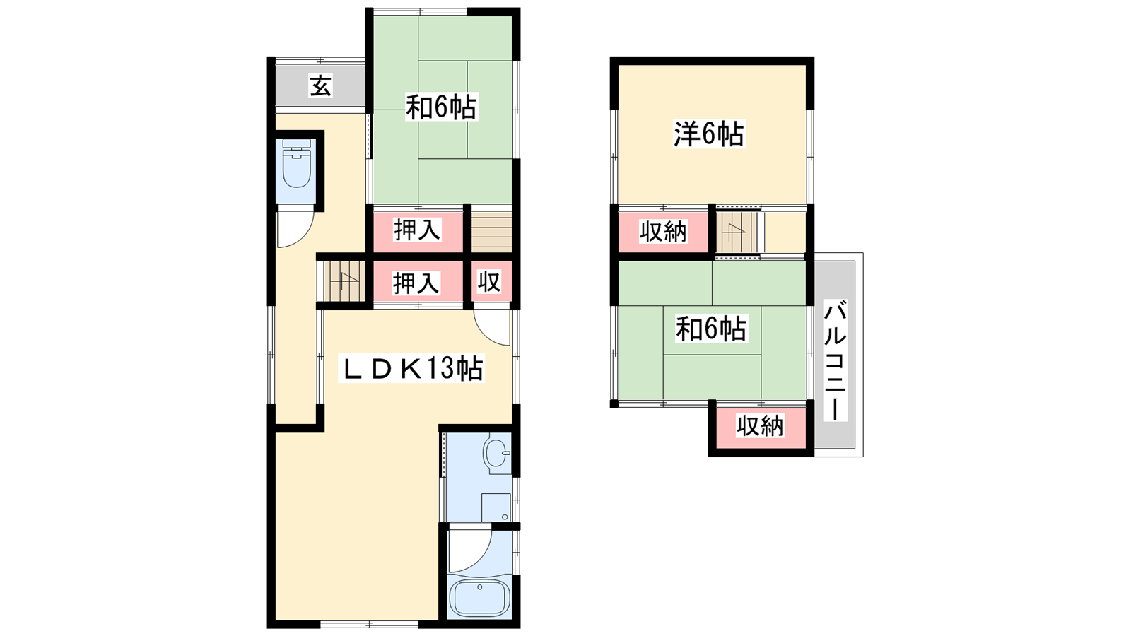 - DK13帖、洋室6帖、和室6帖、和室6帖