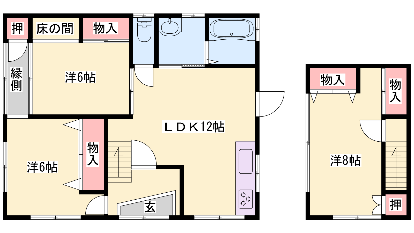 - LDK12帖、洋室8帖、洋室6帖、洋室6帖
