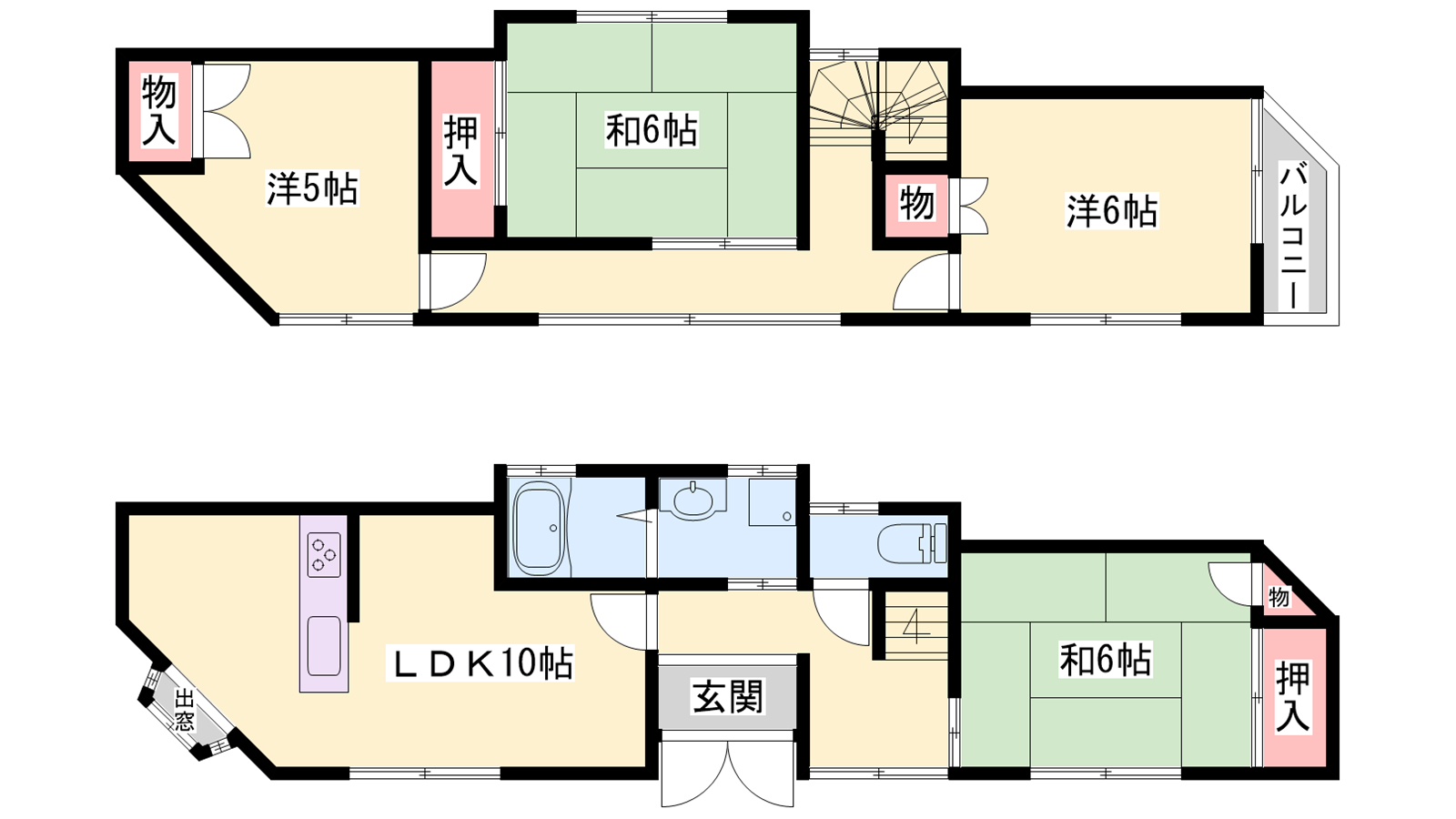 - LDK10帖、洋室6帖、洋室5帖、和室6帖、和室6帖