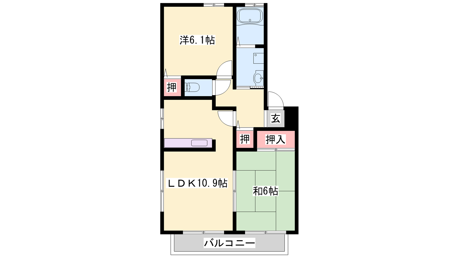 - LDK10.9帖、洋室6.1帖、和室6帖