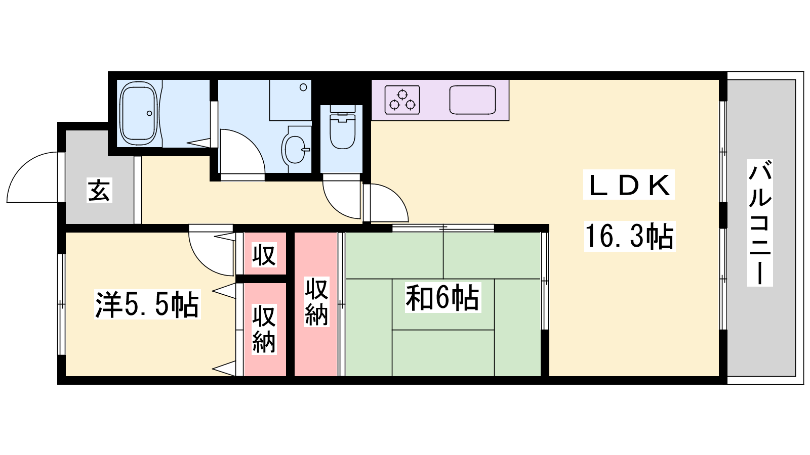 - LDK16.3帖、洋室5.5帖、和室6帖