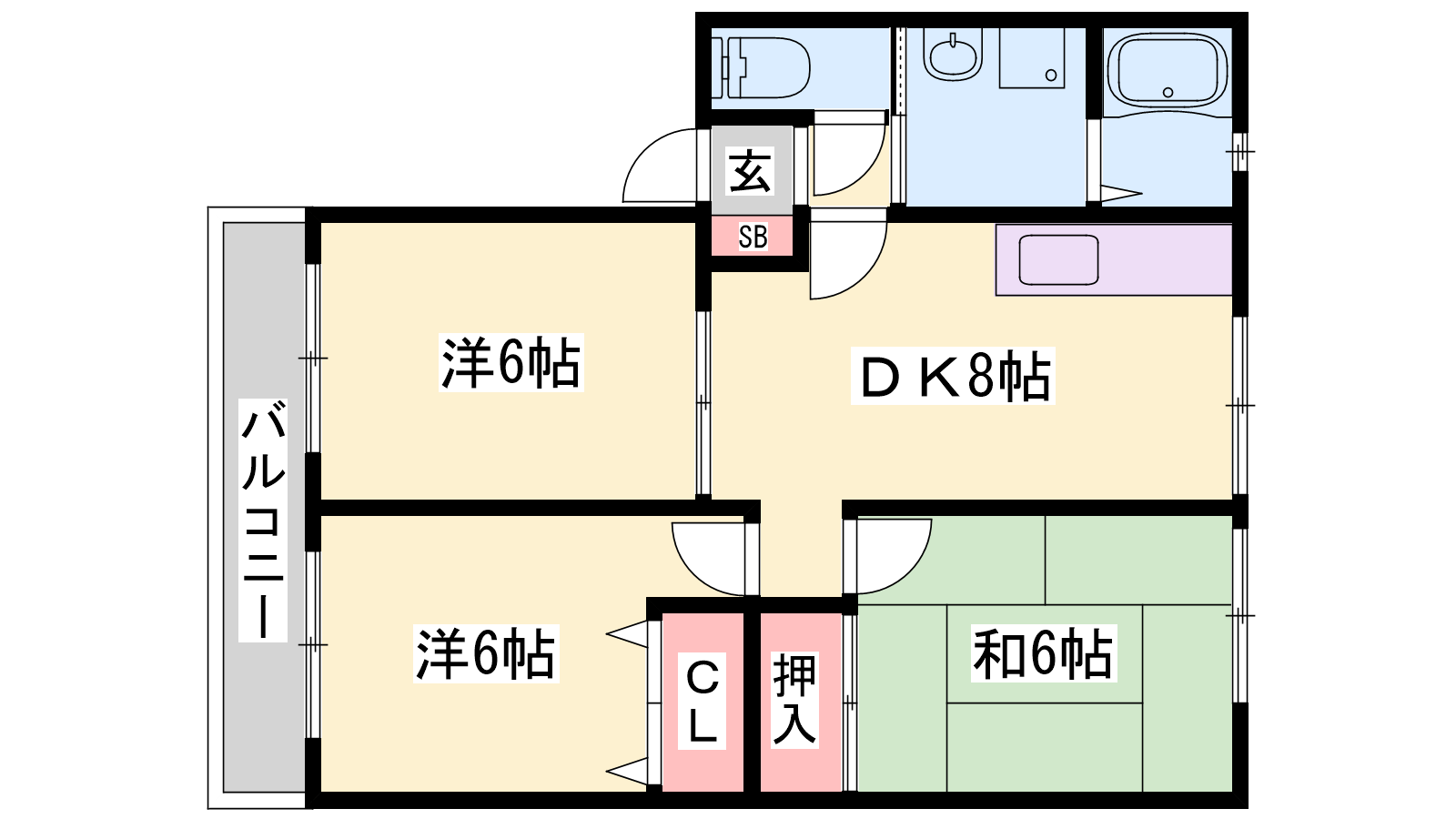 - DK8帖、洋室6帖、洋室6帖、和室6帖