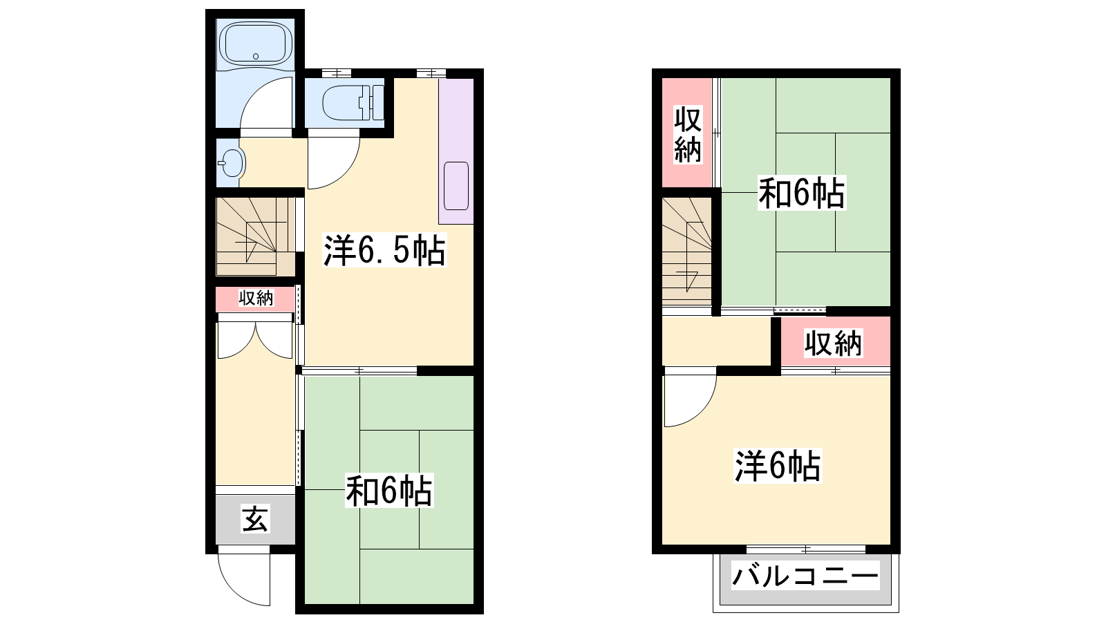 - DK6.5帖、洋室6帖、和室6帖、和室6帖