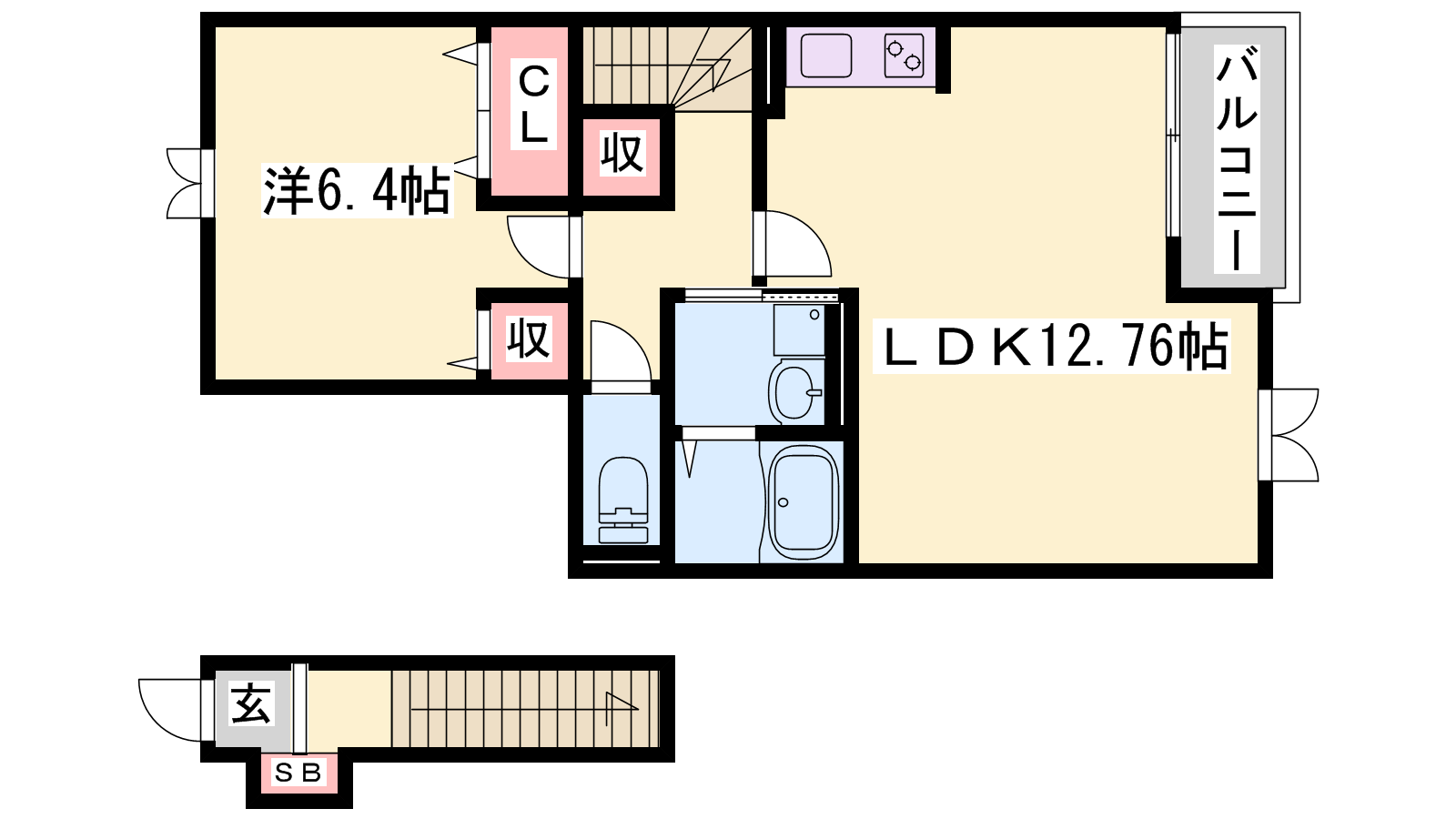 - LDK12.76帖、洋室6.4帖