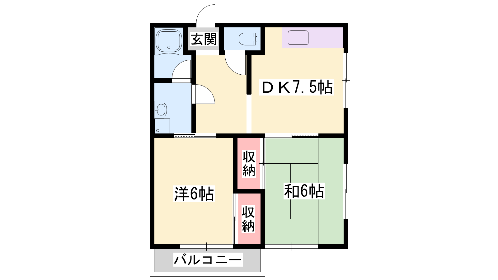 - DK7.5帖、洋室6帖、和室6帖