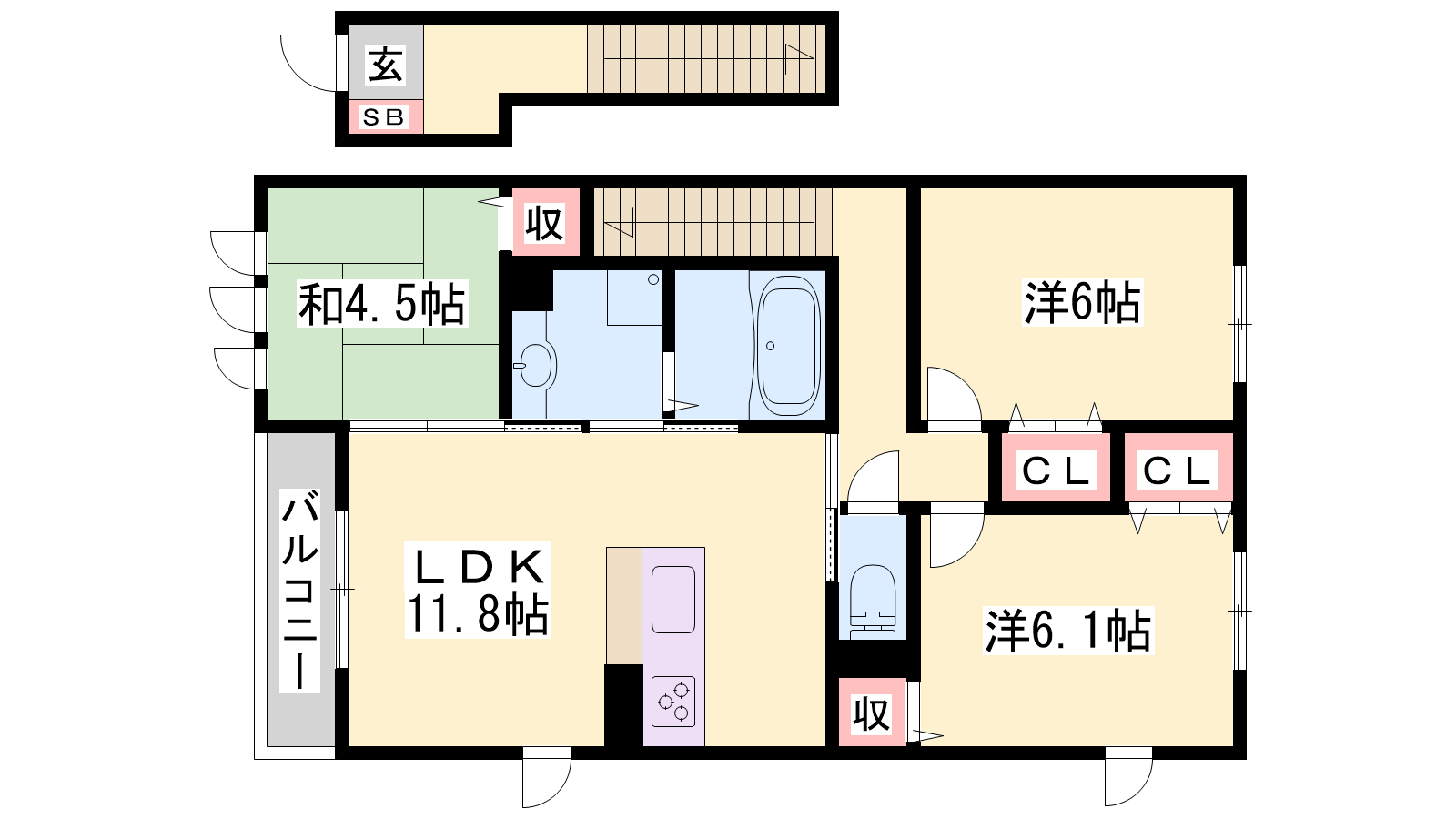 - LDK11.8帖、洋室6.1帖、洋室6帖、和室4.5帖