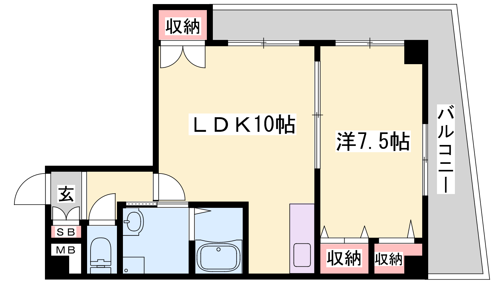 - LDK10帖、洋室7.5帖