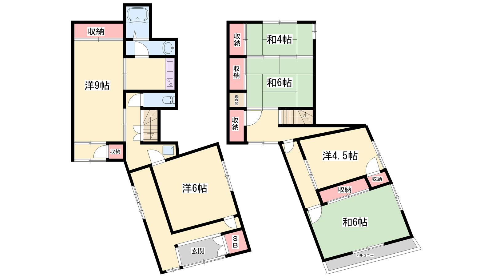 - 洋室9帖、洋室6帖、洋室4.5帖、和室6帖、和室6帖、和室4帖