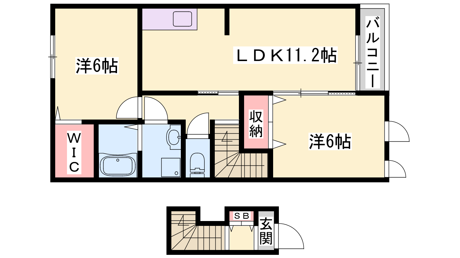 - LDK11.2帖、洋室6帖、洋室6帖