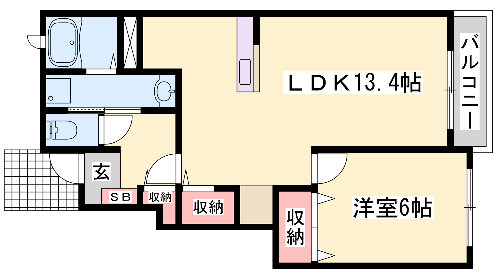 - LDK13.8帖、洋室6帖