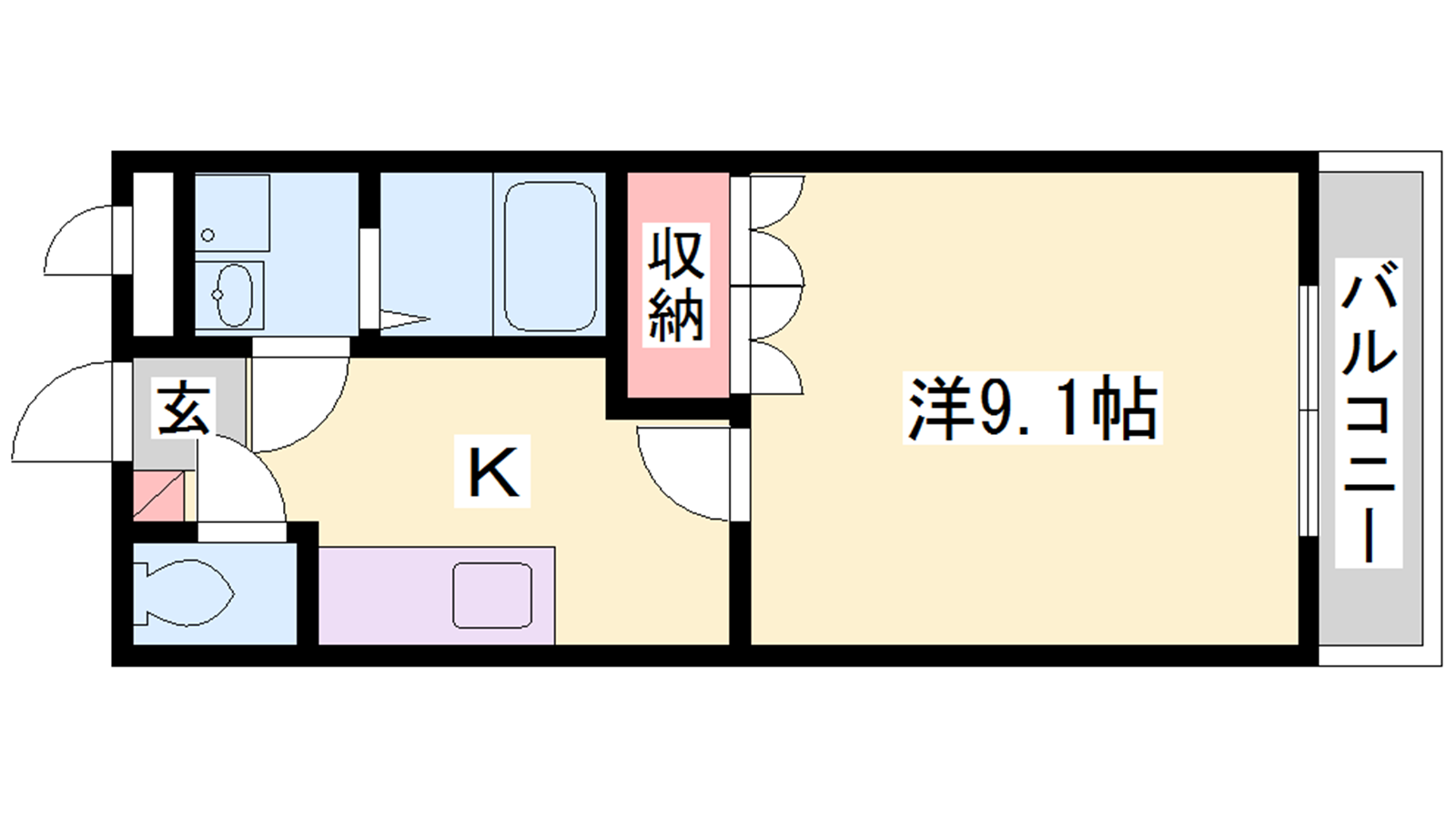 - K3帖、洋室9.1帖