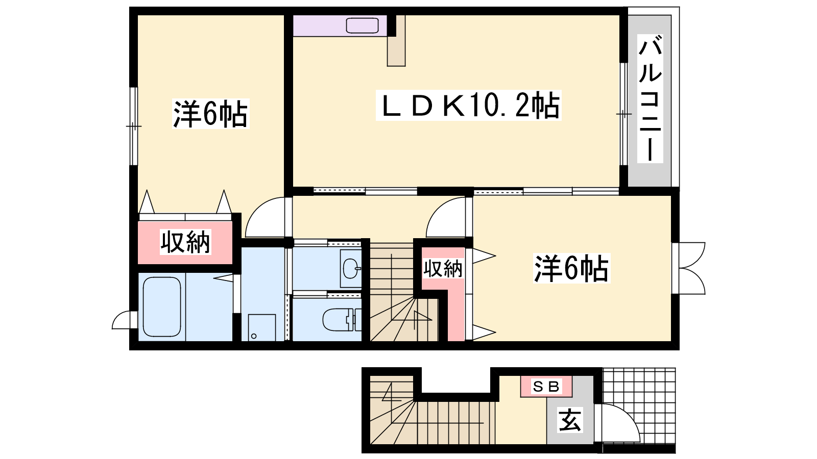 - LDK10.2帖、洋室6帖、洋室6帖