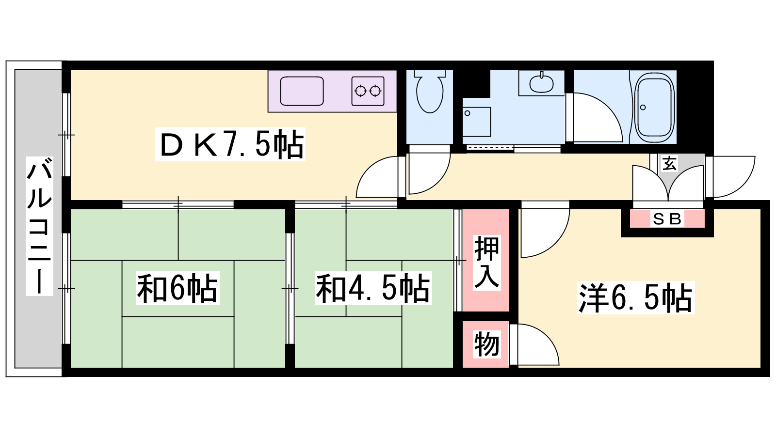 - DK7.5帖、洋室6.5帖、和室6帖、和室4.5帖