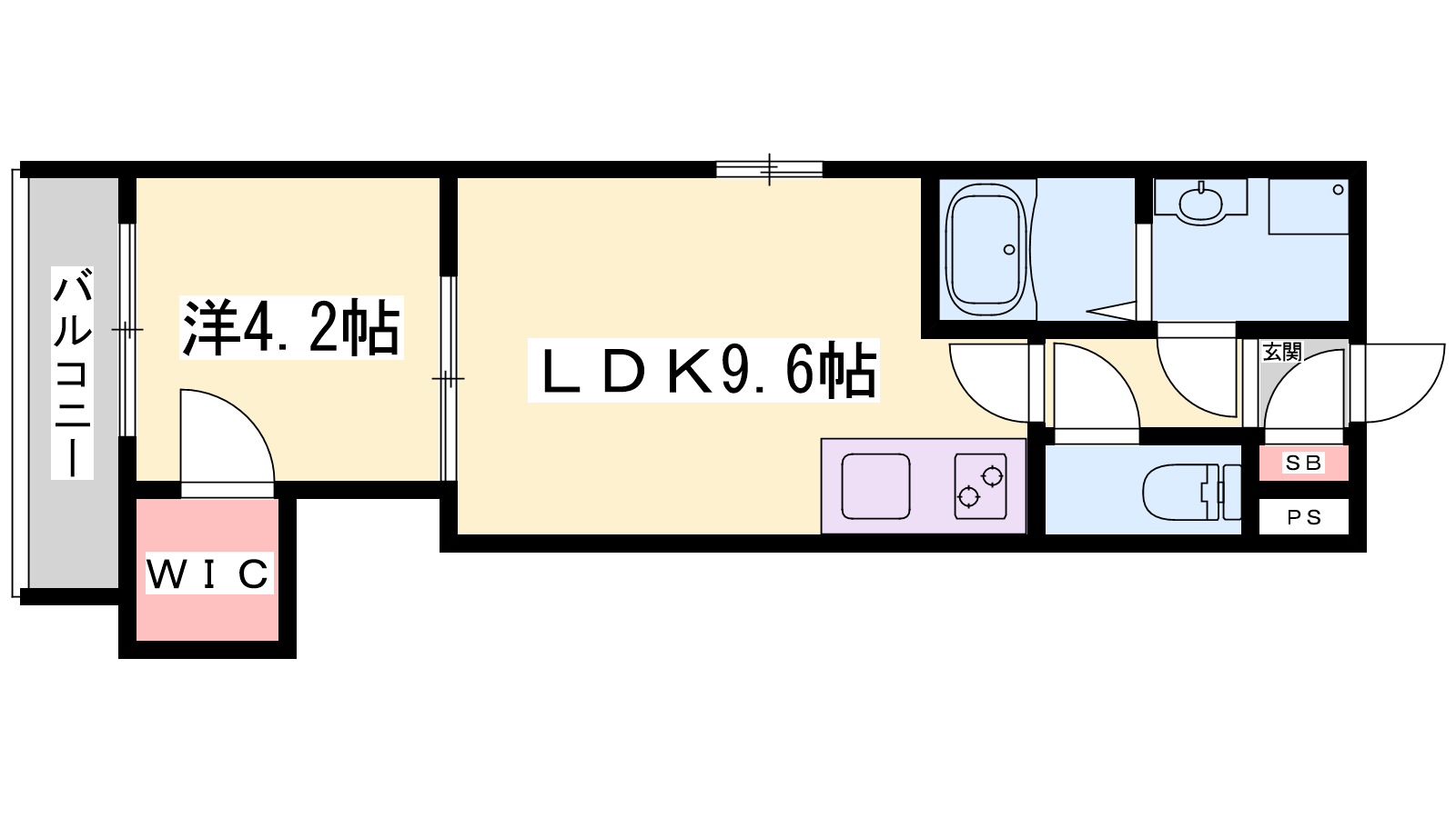 - LDK9.6帖、洋室4.2帖