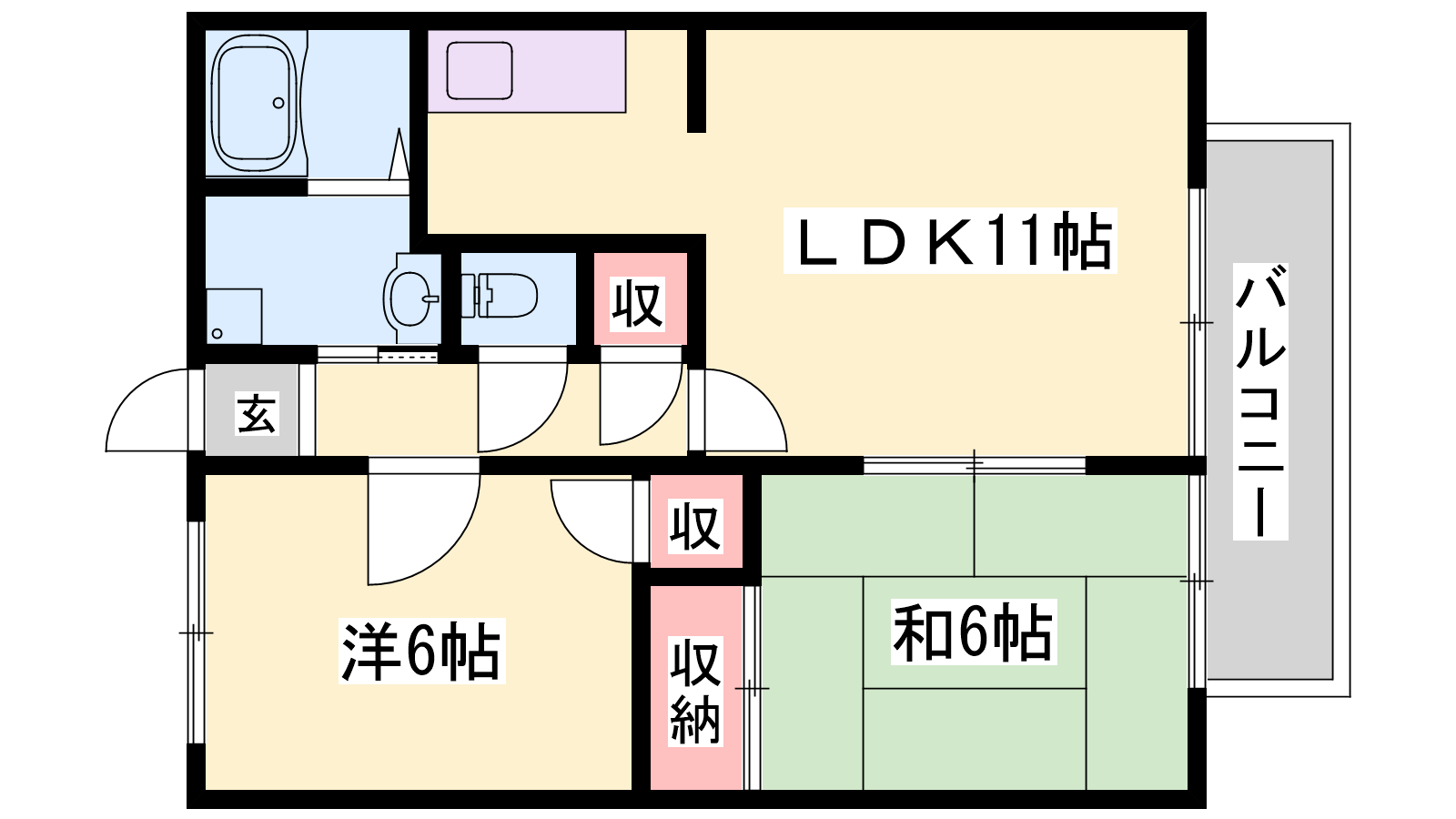 - LDK11帖、洋室6帖、和室6帖