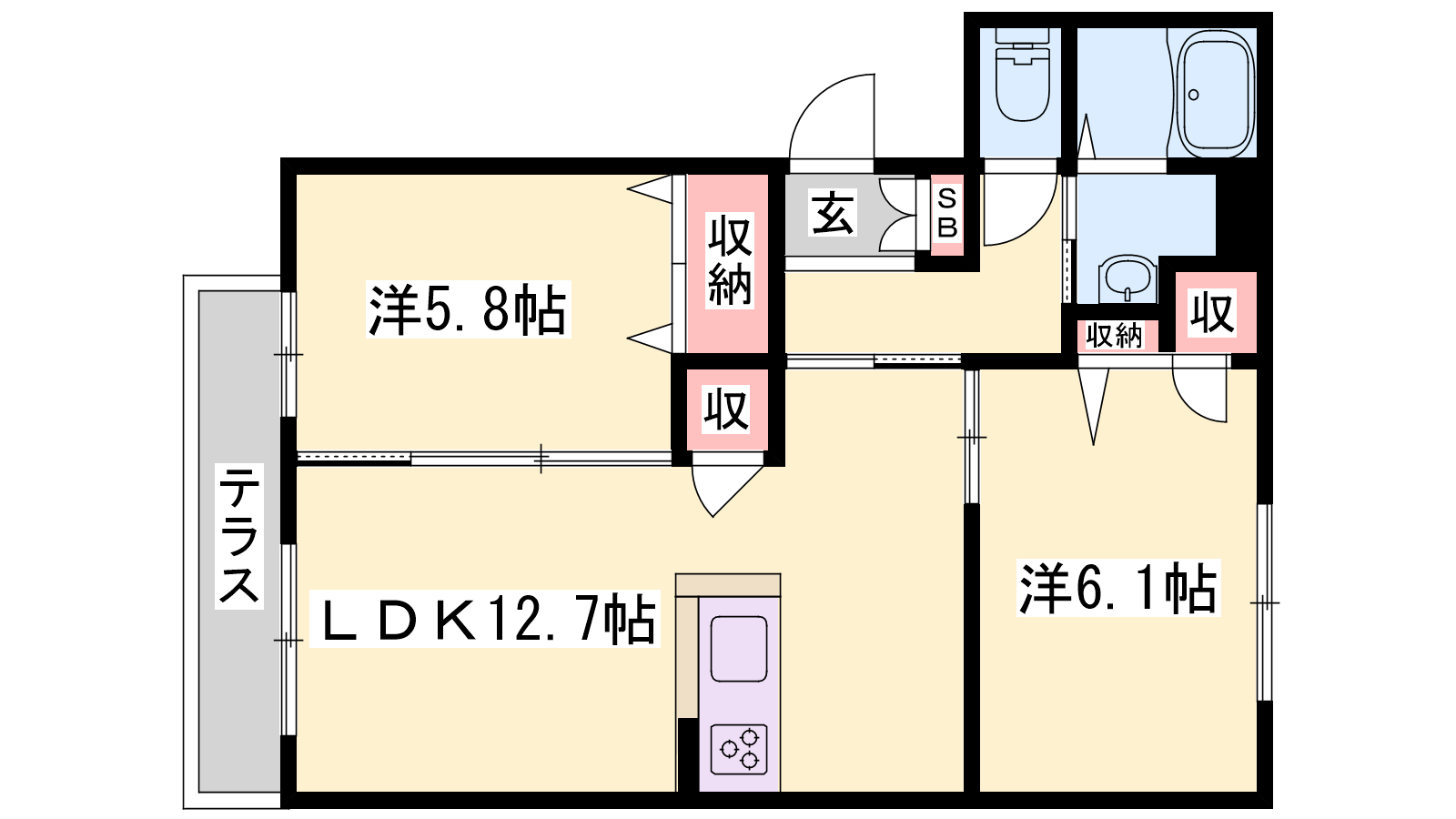 - LDK12.7帖、洋室6.1帖、洋室5.8帖