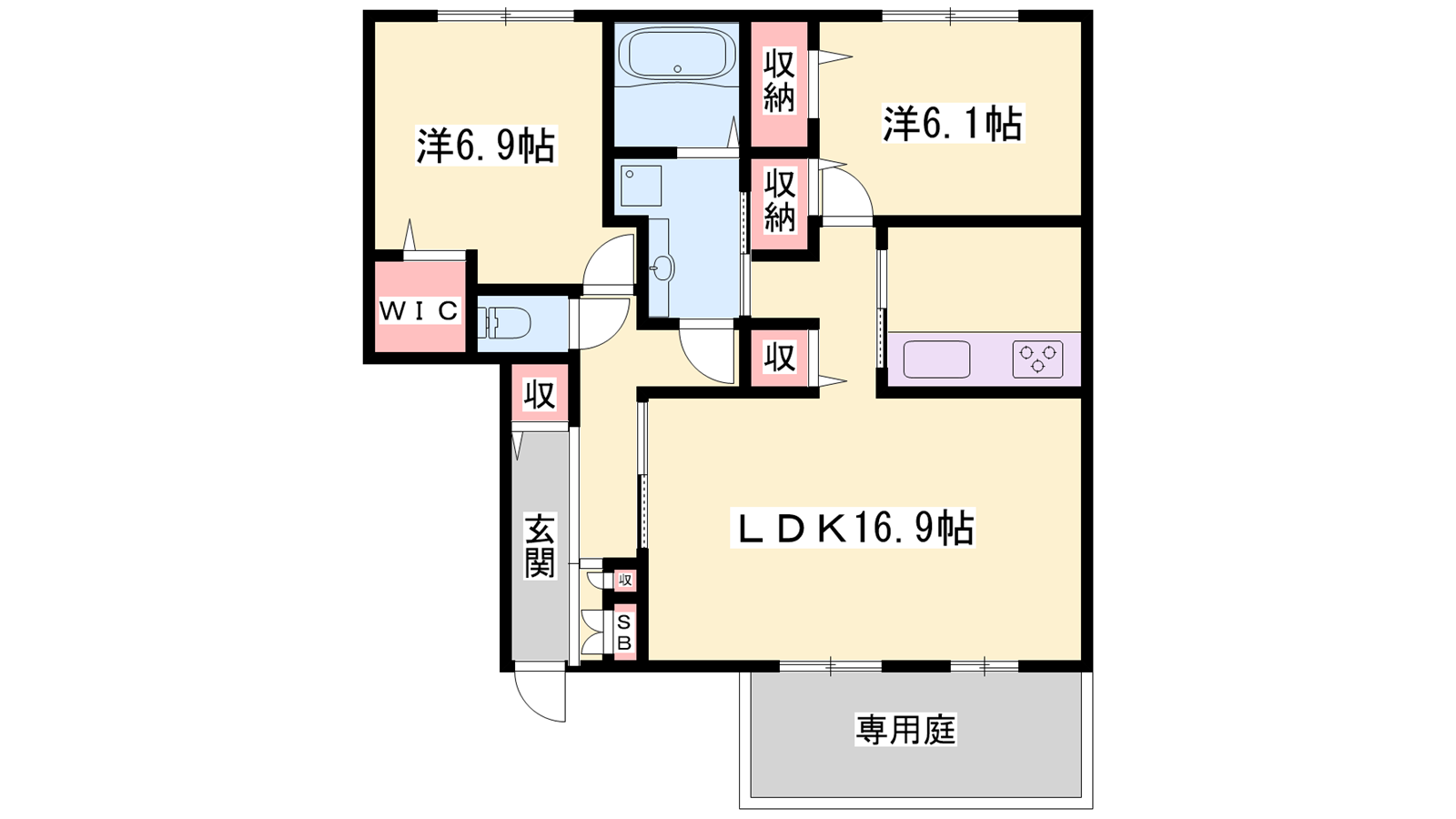 - LDK16.9帖、洋室6.9帖、洋室6.1帖