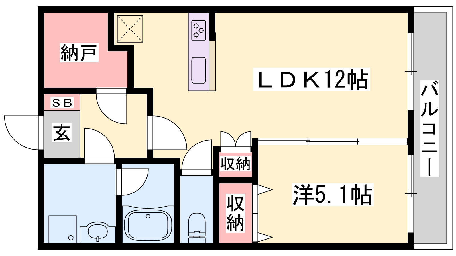 - LDK12帖、洋室5.1帖