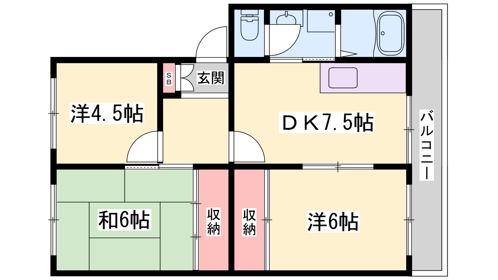 - DK7.5帖、洋室6帖、洋室4.5帖、和室6帖