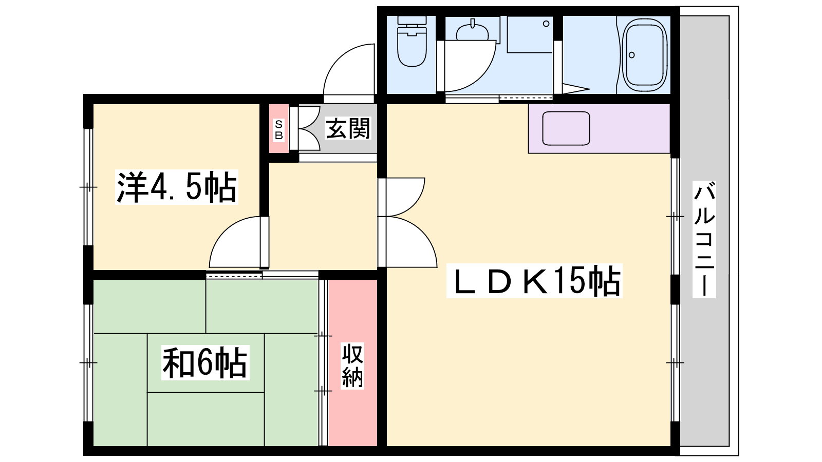- LDK15帖、洋室6帖、洋室4.5帖