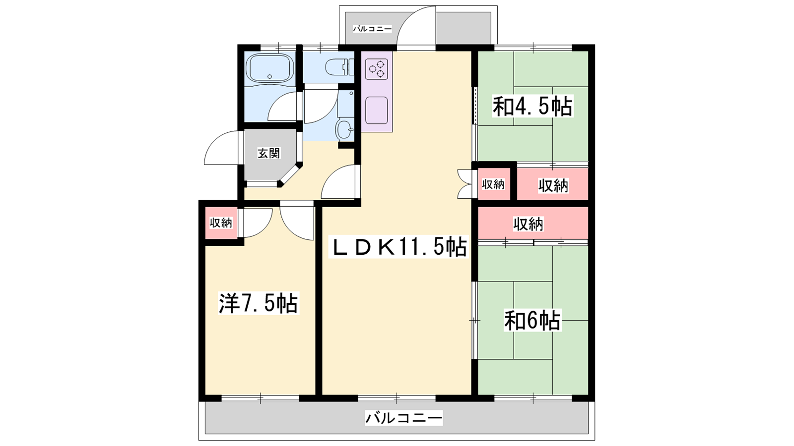 - LDK11.5帖、洋室7.5帖、和室6帖、和室4.5帖