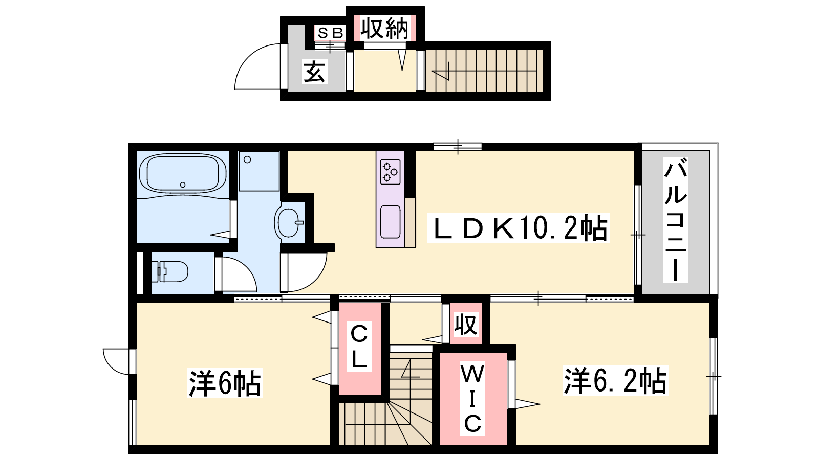 - LDK10.6帖、洋室6.2帖、洋室6帖