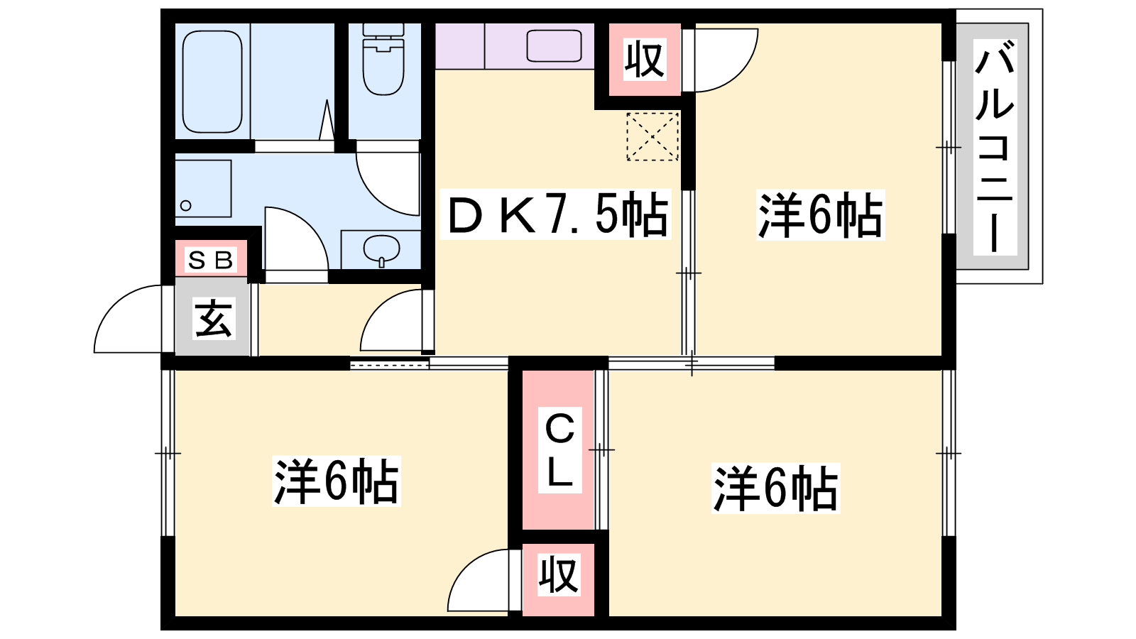 - DK7.5帖、洋室6帖、洋室6帖、洋室6帖