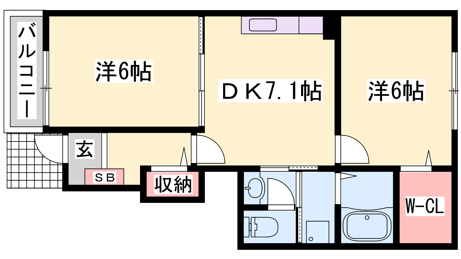 - DK7.1帖、洋室6帖、洋室6帖