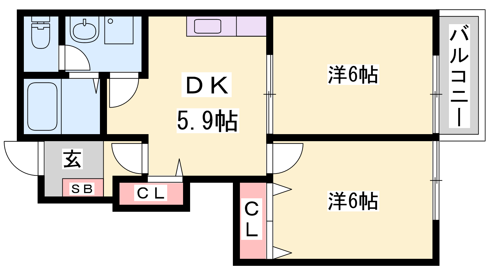 - DK5.9帖、洋室6帖、洋室6帖